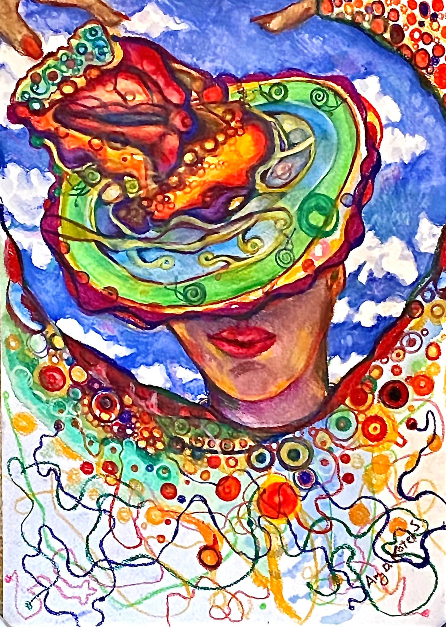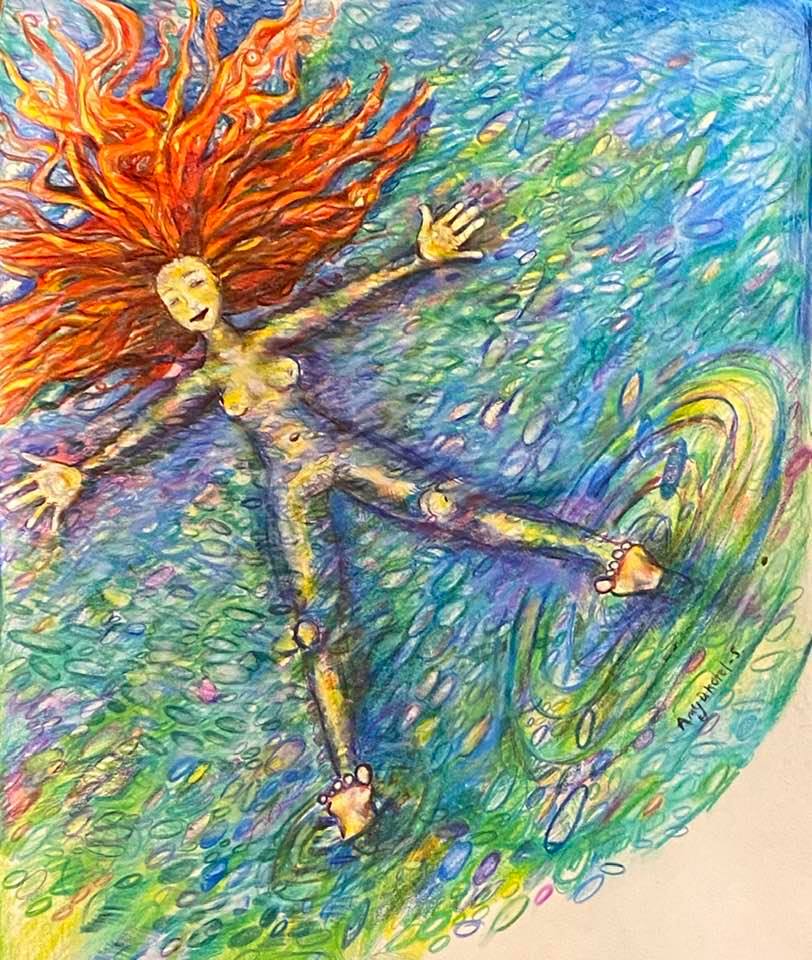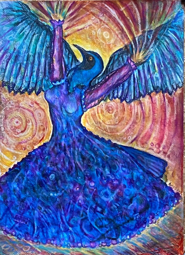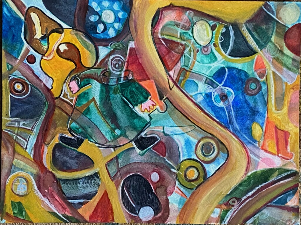 Abstract Angel, 12×14, Watercolor, Color Pencil, $145