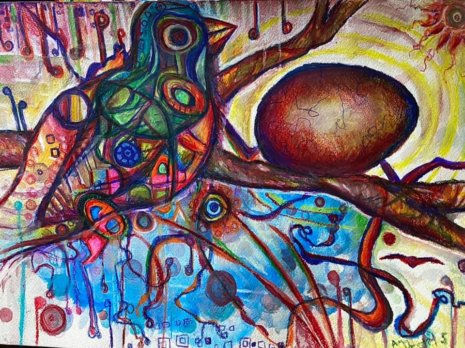 Free Bird, 9×12, Watercolor, and Colored Pencil, $185