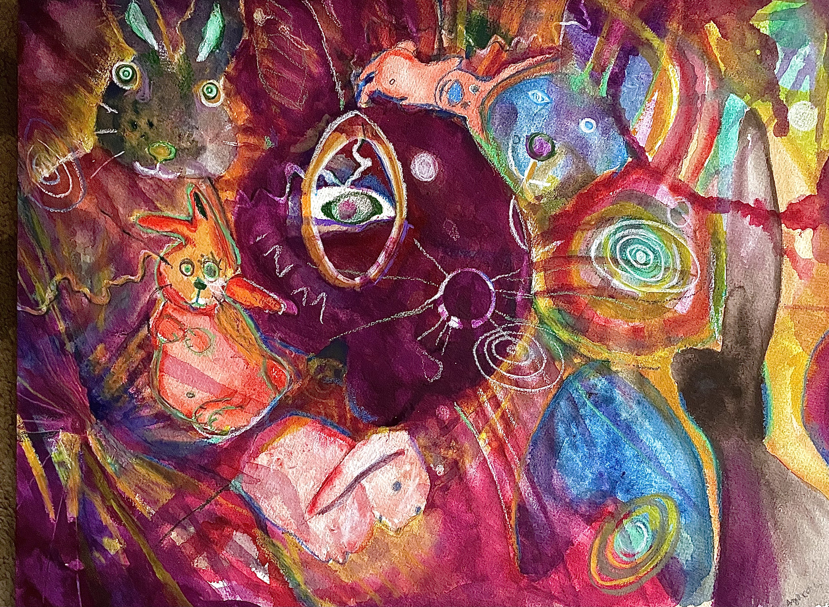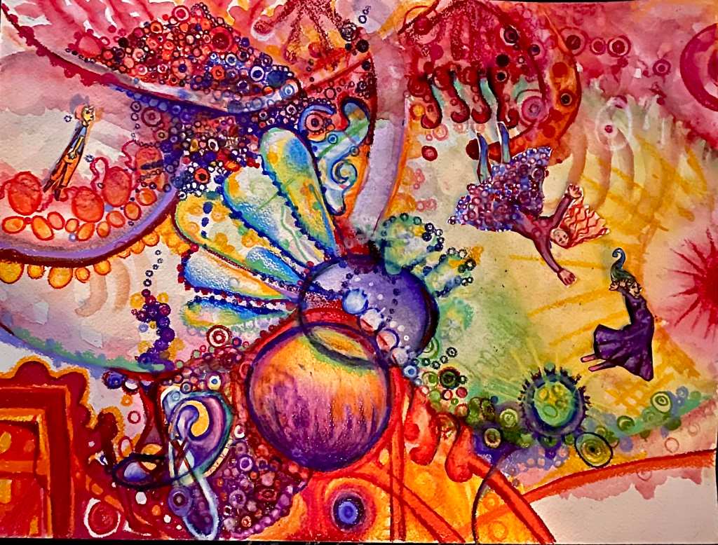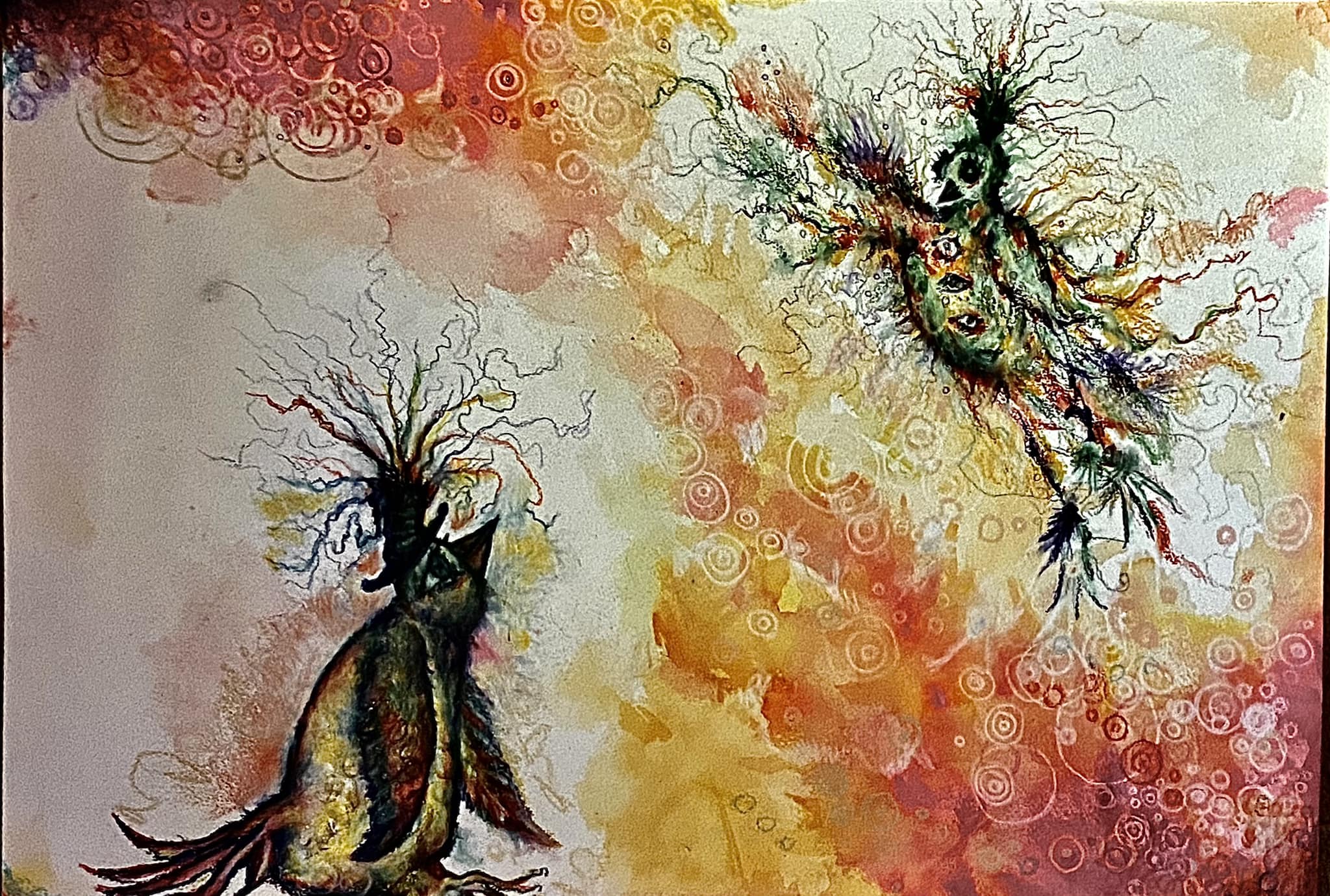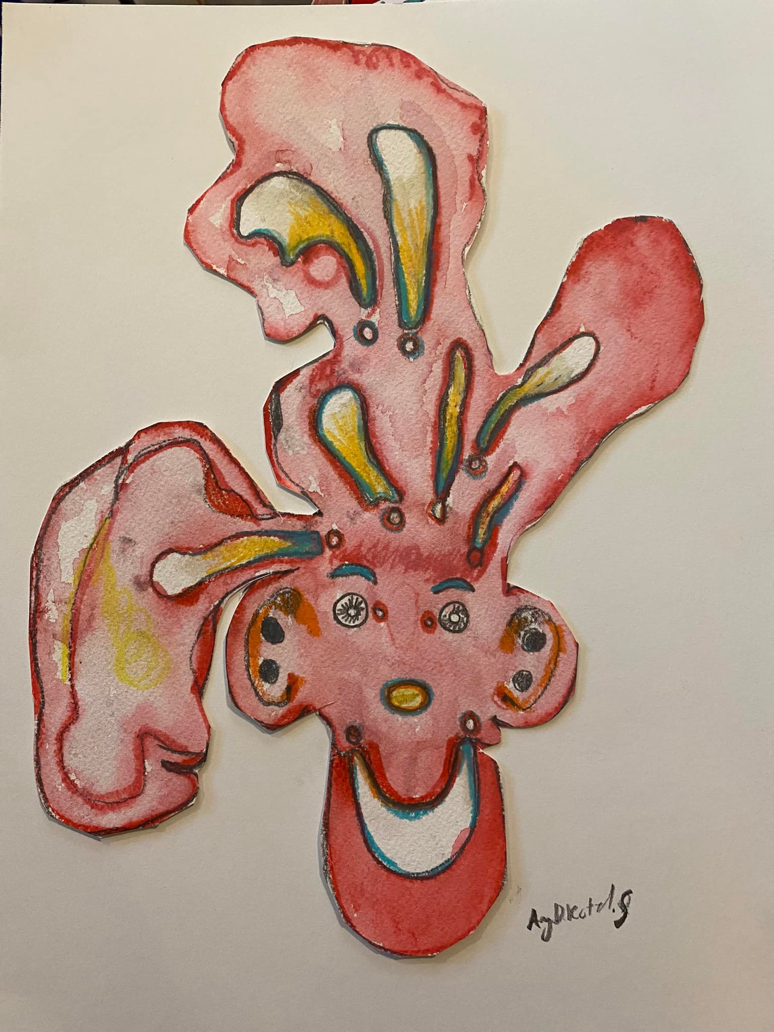 Amy Uses Water Color, Color Pencil, Multi Medium Collages, and Some Soft Sculpture/ Paper Mache’