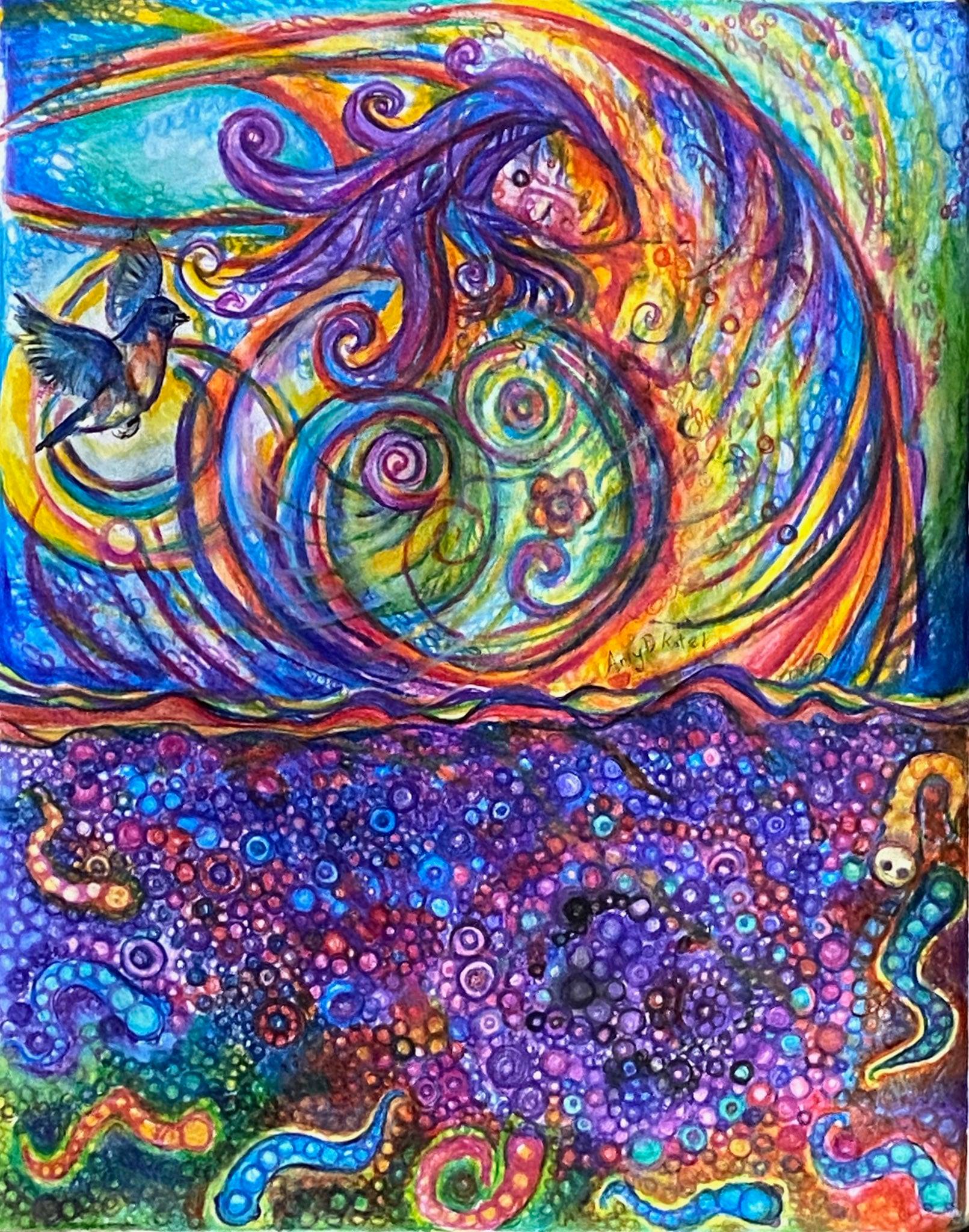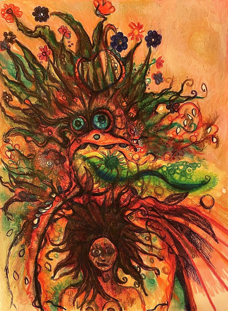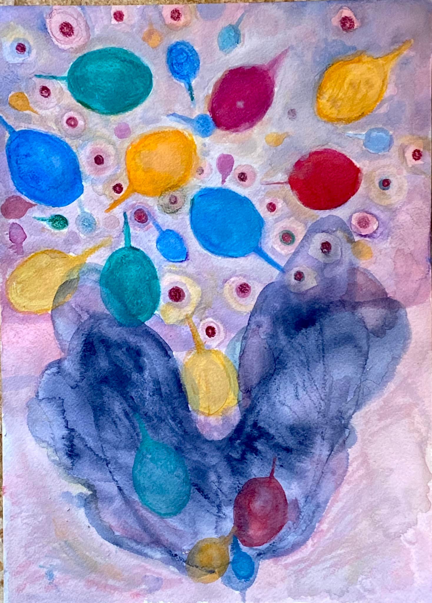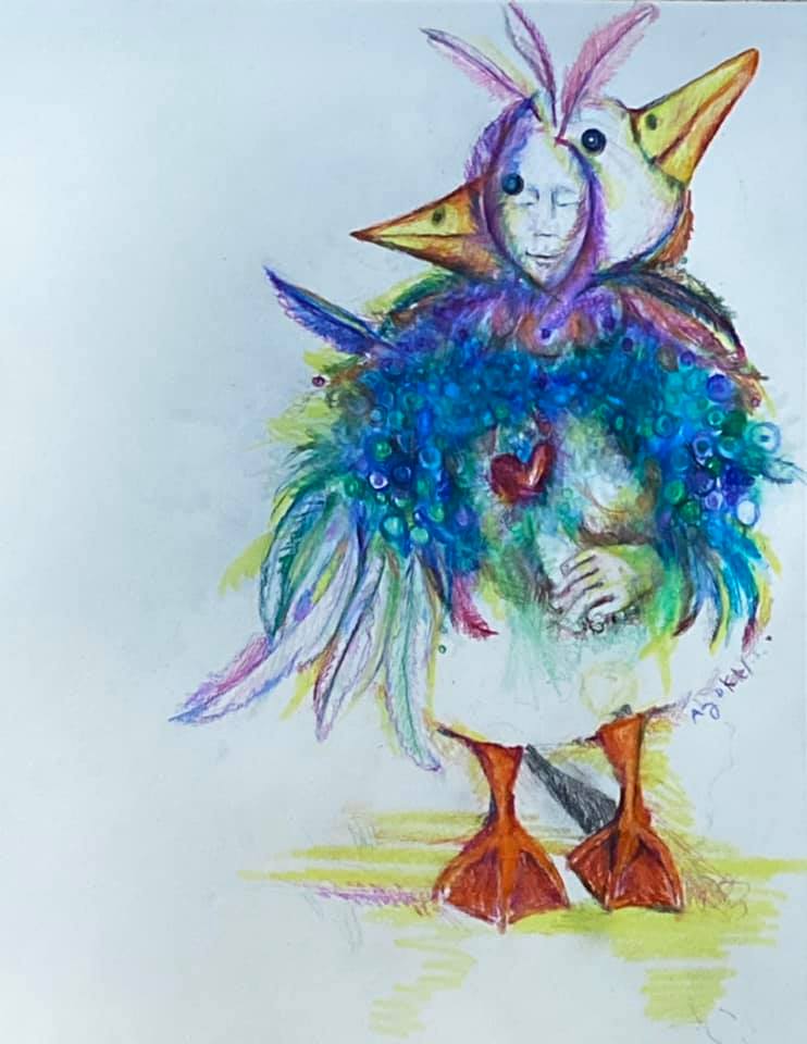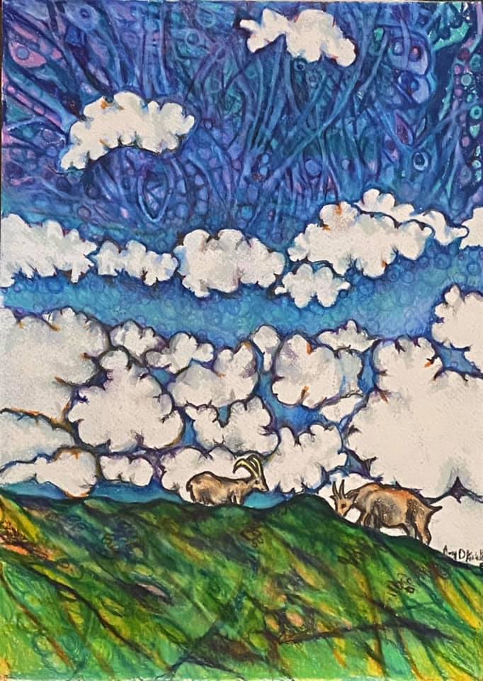 Amy Uses Water Color, Color Pencil, Multi Medium Collages, and Some Soft Sculpture/ Paper Mache’