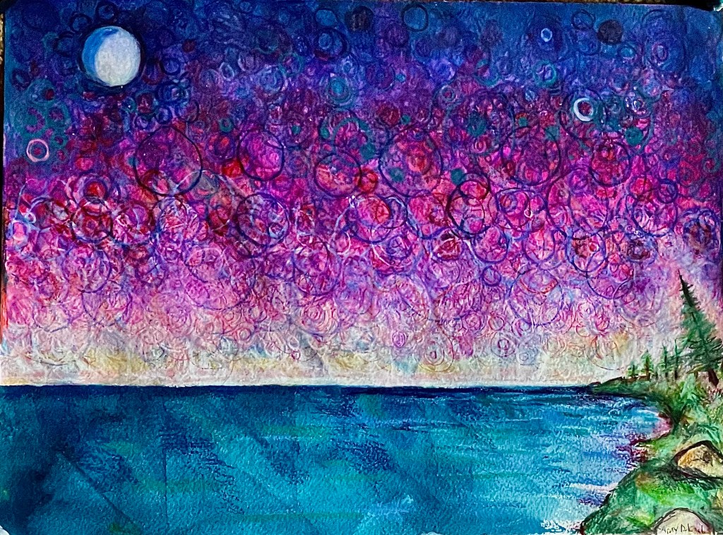 Sun Eclipse, 16×20, Watercolor, Acrylic, $315