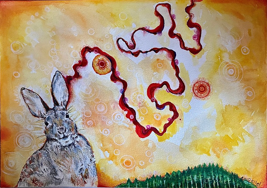 Rabbit Rabbit Rabbit, 12×16, ColorPencil/Water Color, $295