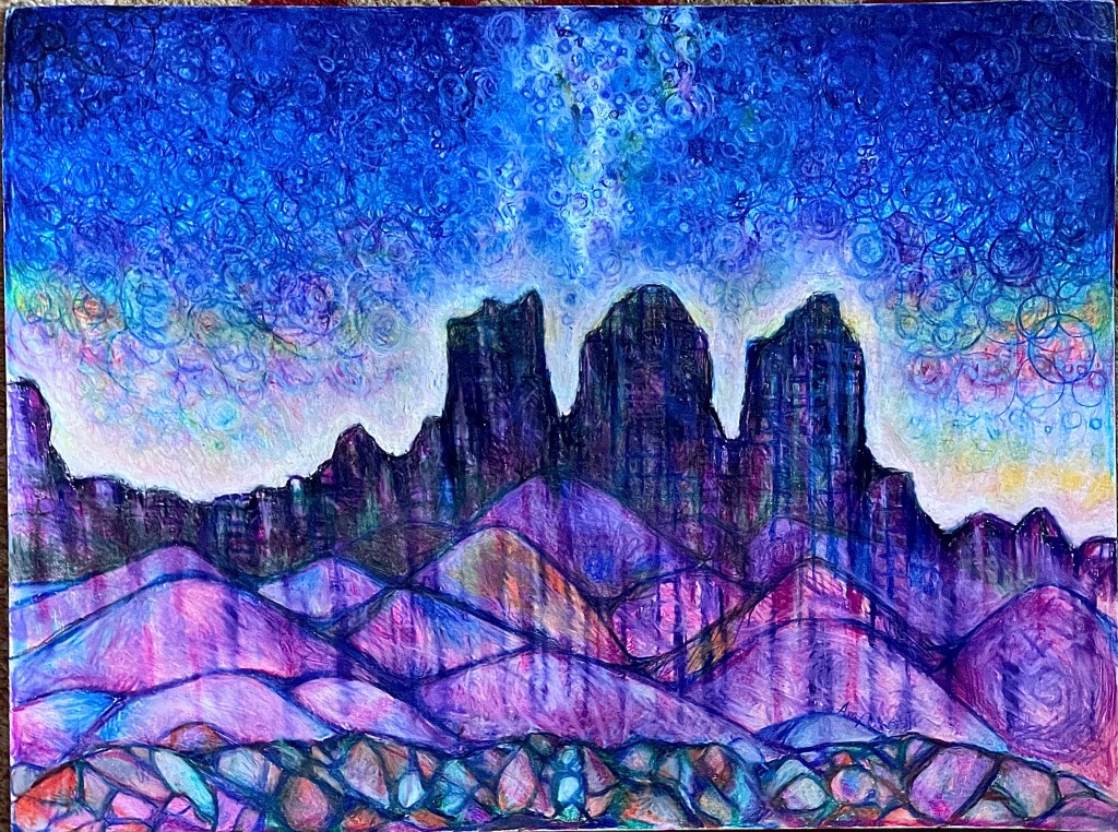 Purple Plateau, 12×16, Color Pencil and Watercolor, $315