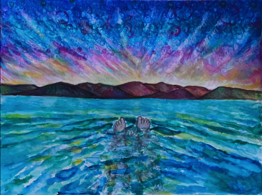 The Evening Float, 12×16, Watercolor + Color Pencil, $315